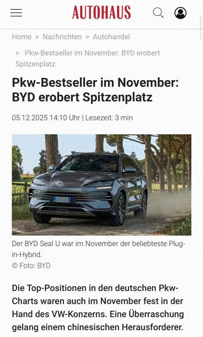 宋PLUS首夺德国插混月度销冠 比亚迪全球化驶入“快车道”