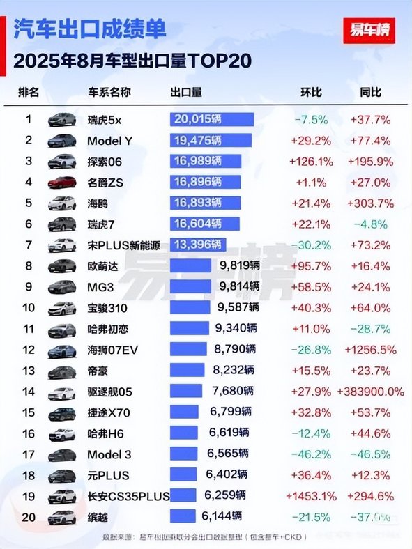 根据权威汽车媒体易车整理的出口数据:8月,比亚迪在生产厂商乘用车出口量排名中以79603辆的成绩位列第二,同比增长154.5%,增速排名第一。今年1-8月,比亚迪汽车累计出口量达601065辆,其中明星车型宋PLUS新能源销量达166699辆,摘得车型出口榜冠军,在国际市场的竞争力不断增加。