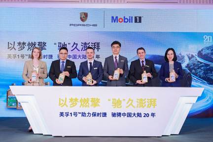 埃克森美孚与保时捷高层共同庆祝美孚1号与保时捷在中国大陆合作20周年