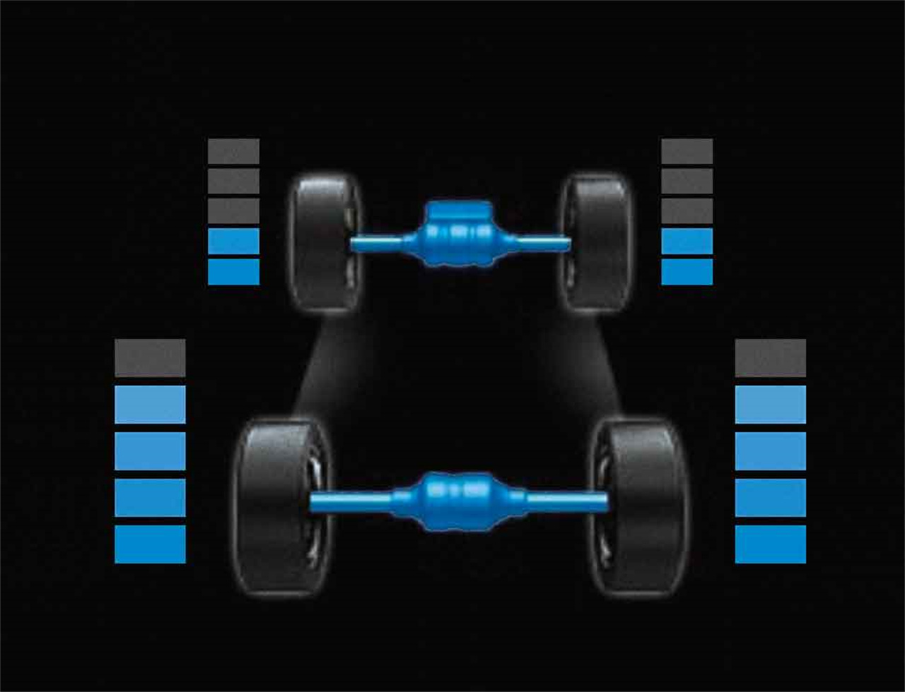 DTC智能四驱系统,将车辆前后轮扭矩进行100:0-50:50的无级分配,相比两驱车,在起步时能提供更好的稳定性和加速性能,在应对湿滑路面以及一般的非铺装路面也能够有更好的通过性,提升驾乘者的安心感。技术更先进、功能更强大的DTV动态矢量四驱系统除了前后可以100:0和50:50分配之外,左右后轮还可以0:100-100:0进行分配。后轮可实现左右独立分配,最明显的提升便是通过性。在应对交叉轴等恶劣路况时,DTV动态矢量四驱系统可把更多的驱动扭矩分配到有附着力的车轮,劲往一处使,实现更有效的脱困。