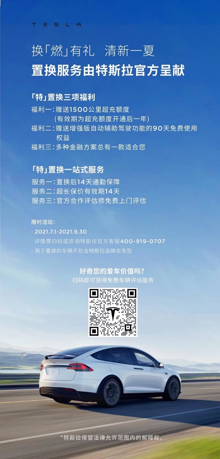趟过了以上3大坑的杨先生最终在特斯拉体验了一把一站式置换服务:只要在今年9月30日前购买并提取特斯拉任意车型,且与特斯拉官方合作服务商签订二手车收购协议,就可以直接以置换车款作为首付,享受超低月供,更有免费超充额度、免费EAP、多种金融方案三大福利,不仅能轻松省下一大笔钱,还完全避免了二手车的交易深“坑”,一举解决了他“新欢”难定、“旧爱”难分的痛苦。