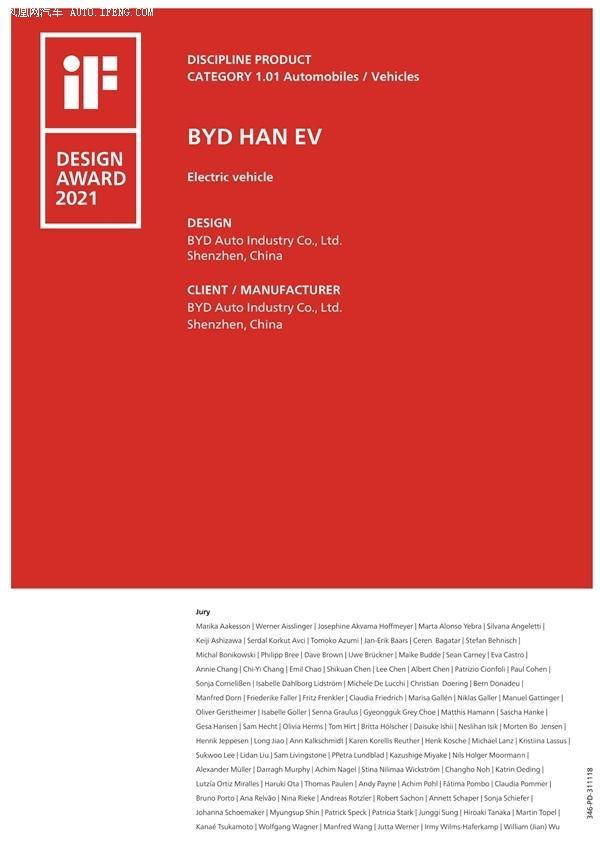 汉EV从近一万个参选作品中脱颖而出获得iF设计大奖