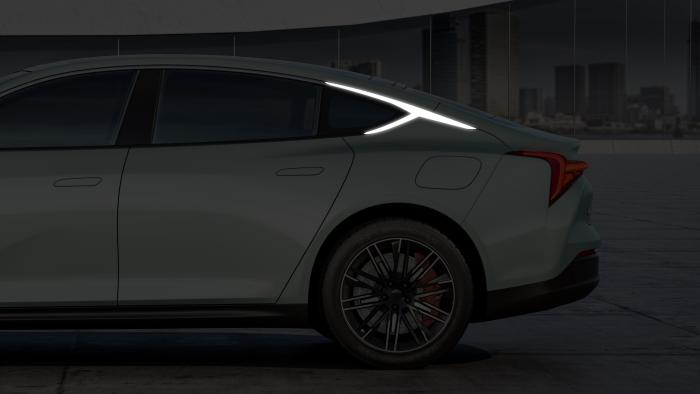 “数字”不止于前沿的智能硬核配置,哪吒S的车身设计与“数字”也实现了交错融合。由拉丁字母“π”形体演化而来的车身前部设计,代表着无限神秘和无穷尽力量的延伸,星形的矩阵也是数字化特征的表达。在数字化时代,短线代表0,长线代表1,哪吒S车身前部、尾部的长短线组合设计灵感即源于此。Lambda C柱特征造型独树一帜,其创意灵感来自于拉丁字母“λ”,寓意着创新的无限可能。