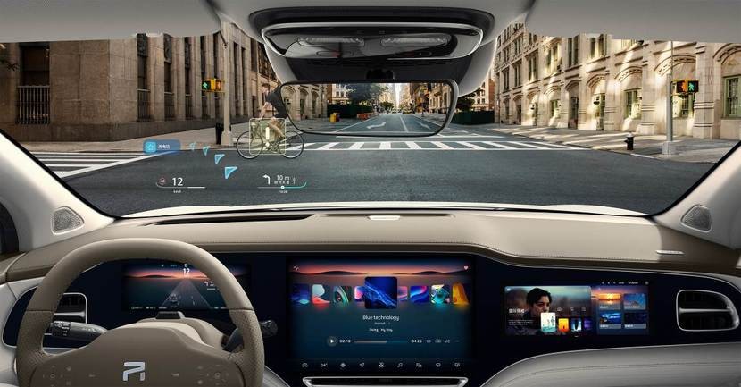 此外,飞凡汽车还与华为联手,在飞凡R7上搭载了全球首发的视觉增强AR-HUD平视系统。AR-HUD系统视场角为13°×5°,据说是量产车型中最大的。同时,1920*730高分辨率号称业界最高,能够更直观地显示车道级实景导航、实时ADAS等信息,也具备充电站、购物场所等POI信息推荐及驻车环境下的巨幕影音观看功能。值得一提的是,AR-HUD还能与三联屏实现四屏联动。同时,结合飞凡独家自研的PP-CEMTM像素级点云融合高阶智驾技术,还能为驾驶员带来更为直观的ADAS等信息提示。